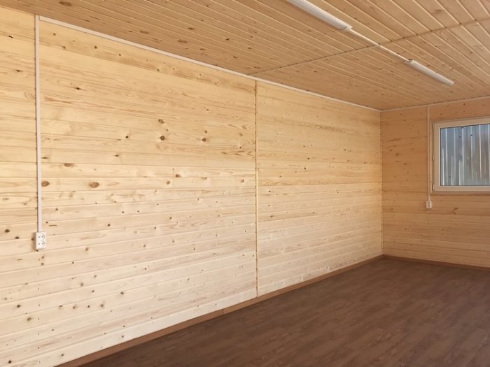 - Жилые бытовки с отделкой ОСБ панелями. ОСБ (ориентированно-стружечная плита) — это практичный и экономичный материал для внутренней отделки жилых бытовок. ОСБ-панели класса 3 толщиной 9-12 мм создают прочную гладкую поверхность стен и потолка, на которую можно наносить любое финишное покрытие.