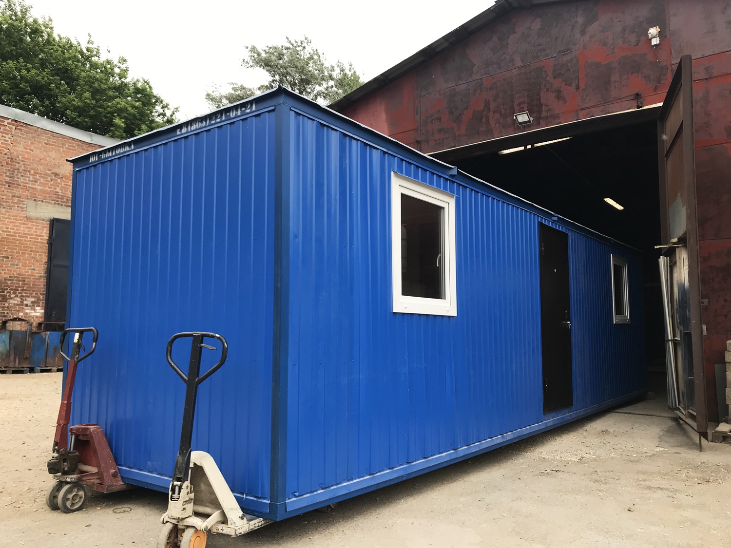 Бытовка жилая с синим профнастилом