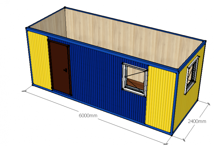 Бытовка жилая с желто-синим профнастилом